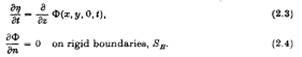 Попередні рішення пристроїв хвильової енергії, які базуються на ідеї форсування пійманого об’єму повітря на водній поверхні через турбіну, були змодельовані вільними поверхнями з умовою для твердої поверхні запропонованої вертикальної швидкості. Подивимось, наприклад, Коунта та ін. (1981). Там обговорювалось, що довгі хвилі принаймні (k® 0), умова тиску (2.6) зводиться до умови твердої поверхні. Однак, щоб бути послідовними, те ж саме наближення потрібно зробити по вхідній вільній поверхні, в якій випадок задачі елемента хвилі втрачений.