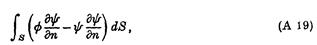 Ми можемо замінити ф0 - фd – фs. Але поверхневий інтеграл, який включає фs зникає, якщо, використовуючи (А19), ми заміняємо його негативним поверхневим інтегралом по Sj та Sc, ми знаходимо, що внеску від кожного y і та фs немає, і задовольняє умови (А5) і (А6).