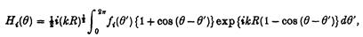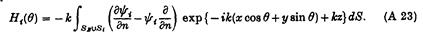 Оскільки y і та exp {- ik (x cosq + y sin q) + kz} - гармонічні функції, які задовольняють (А5), з (А19) витікає, що Hі(q) може бути записане як негативн величина того ж підінтегрального виразу проінтегрованого по Sc. Це дозволяє поведінку y і в далекій області, яка дана в (А15) використати для отримання: