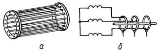 Трифазний струм, що проходить через обмотку статора асинхронного двигуна, створює обертове магнітне поле, яке перетинає провідники обмотки ротора, індукує в них є. р. с. У провідниках замкненої обмотки протікають струми і2