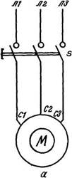 Рис. 2. 2. Схеми включення асинхронних двигунів з допомогою натискних пускачів