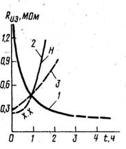 2 - відновлення опору ізоляції при включеному електродвигуні (хх-холостий хід; н - навантаження);