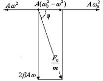 Векторна діаграма дає можливість визначити амплітуду і початкову фазу вимушених коливань. З діаграми видно, що