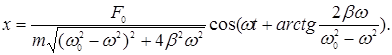 З урахуванням співвідношень (6) і (7) розв’язок диференціального рівняння вимушених коливань (2) матиме вигляд