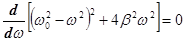 . Диференціюємо підкореневий вираз цієї функції по ω і прирівнюємо його до нуля: