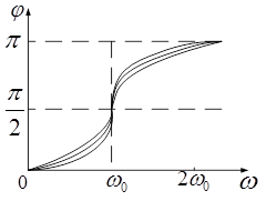 , тобто фаза коливань майже протилежна до фази зовнішньої сили. Сімейство кривих, зображених на рис. 4, називається фазовими резонансними характеристиками.