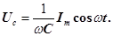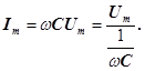 Порівнюючи вирази (25) і (26) приходимо до висновку, що спад напруги Uс відстає по фазі від струму, який тече через конденсатор на π/2. Це показано на векторній діаграмі (рис. 7, б).