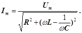У даному випадку повний опір ланцюга Ζ (30) стає найменшим, рівним активному опору R, а струм у ланцюзі визначаючись активним опором, досягає найбільших значень (при даному значенні Um ) . При цьому спад напруги на активному опорі дорівнює зовнішній напрузі, прикладеній до ланцюга (UR = U), а спади напруг на конденсаторі (Uc ) і котушці індуктивності (UL ) однакові по амплітуді і протилежні по фазі.