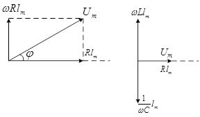 Результуюча амплітуда Um прикладеної напруги повинна бути рівною геометричній сумі амплітуд всіх спадів напруг. Як видно з рис. 8,б, кут φ визначає різницю фаз між напругою і силою струму. З рисунка випливає, що