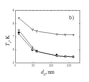 = 34 нм, – видим полное несоответствие экспериментальным данным по структуре Nb/Cu/Nb. Воспроизвести экспериментальную зависимость Tc