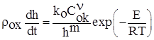 Здесь Сок – концентрация окислителя у поверхности частицы; n – порядок реакции по окислителю; rox – плотность оксида; k0 – предэкспоненциальный множитель; Е – энергия активации. Показатель m определяет зависимость скорости реакции от толщины слоя окиси h. В кинетической литературе название закона связывают с величиной m (m=0 – линейный, m=1 – параболический, m=2 – кубический), что соответствует интегральной форме этих законов.
