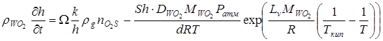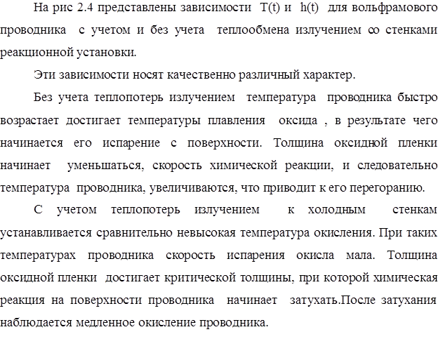 2.2.Физико–математическое моделирование процессов высокотемпературного окисления вольфрамовой проволочки с учетом испарения оксидной пленки