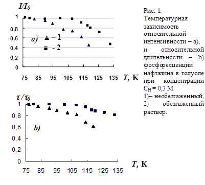 Реферат: Влияние температуры на миграционно-ускоренное тушение фосфоресценции нафталина кислородом в стеклообразном толуоле