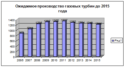 Рисунок 1. Ожидаемое производство парогазовых турбин до 2015 года.