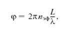 де Δnэф - різниця ефективних показників заломлення мод. Як видно, різниця фаз між модами змінюється при зміні довжини волокна. Тому змінюється і картина інтерференції мод (див рис.2.4, в, внизу), що і використовується для реєстрації.
