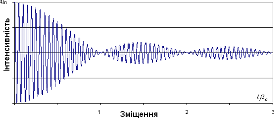 Рис.2.2. Залежність інтенсивності інтерференції двох інтерферуючих від їхньої різниці ходу l.