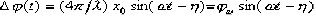 Далі розглянемо сигнал інтерферометра, що виникає в результаті відображення світла від вібруючої поверхні (резонатора). У результаті коливання резонатора, різниця фаз інтерферуючих променів змінюється в такий спосіб: