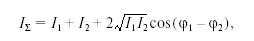 де φ - різниця фаз інтерферуючих променів, І1 і І2 - їх інтенсивності, g - ступінь когерентності.