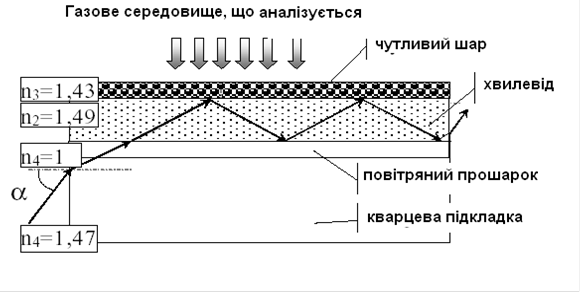 Рис.3.4.Чотирьохшарова конструкція плоскохвильового оптичного хімічного сенсора.