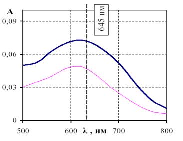 Для дослідження сенсорних властивостей функціонального полімеру зразок поміщався у вимірювальну комірку і напускалась аміачно-повітряна суміш. Час повного циклу напуск-регенерація складав близько 18 хвилин (рис.3.6), що відповідає вимогам, пропонованим до засобів контролю повітря населених місць. Аналітичний сигнал (ΔU) зв'язаний з оборотним знебарвленням плівки чуттєвого шару, тобто зниженням його оптичної густини (А) у результаті взаємодії катіона брильянтового зеленого з молекулами аміаку (рис.3.7).