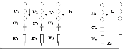 Таким образом, внутреннее ухо осуществляет параллельный спектральный анализ приходящих колебаний и позволяет ощущать звуки с частотами от ~20 Гц до ~ 20000 Гц. Эквивалентную электрическую схему анализатора можно изобразить следующим образом (см. рис. 2).