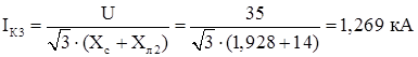 Токовая отсечка должна срабатывать на минимальные токи при КЗ, этими токами для сетей 35 кВ с изолированной нейтралью является двухфазный ток КЗ: