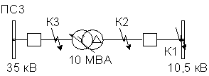 Проведём расчёт тока трёхфазного КЗ в точке К1 (указана на рисунке 2).