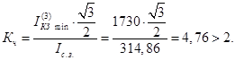 Ка – коэффициент, учитывающий увеличение тока КЗ из-за наличия в нём апериодической составляющей (Ка =1);