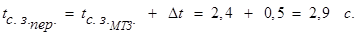 где tc.з.МТЗ – время срабатывания МТЗ, установленной на стороне высокого напряжения трансформатора (tc.з.МТЗ = 2,4 с);