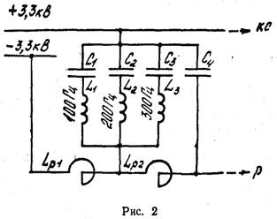 Чтобы обеспечить нормальную работу линии связи, проходящей вдоль заданного участка контактной сети, необходимо на тяговых подстанциях установить сглаживающие фильтр-устройства. Принципиальная схема такого устройства приведена на рис. 2. Фильтр-устройство содержит два реактора, три резонансные параллельные ветви, настроенные на 100, 200 и 300 Гц, и четвертую емкостную параллельную ветвь, предназначенную для подавления гармоник более высоких порядков. В нашем случае значение емкости С4 достаточно взять 32 мкФ , при котором не будет превышаться допустимое значение напряжения шума U шн . Это позволит уменьшить затраты на комплектацию фильтр-устройства.