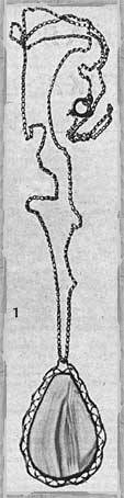 Фото 1 - Агатовий медальйон. Торець агатової пластини металізований міддю, до нього припаяна ажурна оправа з мідного дроту. Потім усе покрито загальним шаром гальванічної