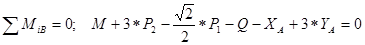 6) ∑MKZ =-XB ·АВ-Q·AB·cos45°=0.