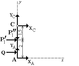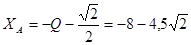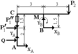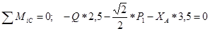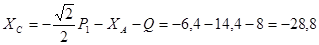 Из (1) XA =-XB +RC ∙cos30°-Q·sin45°=2,8+4,7-2,8=4,7кН
