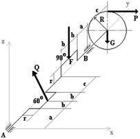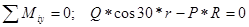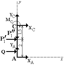 5) ∑MKY =G·AC/2·cos30°-RC ·AC·sin60°+Q·AC·sin75°=0;