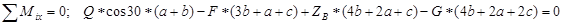 4) ∑MKX =ZB ·AB-G·AB/2-Q·cos45°·AB=0;