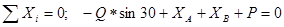 1) ∑FKX =XA +XB -RC ∙cos30°+Q·sin45°=0;