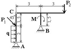 Задание: Найти реакции опор конструкции. Схема конструкции показана на рисунке 1. Необходимые данные для расчета приведены в таблице 1.