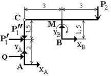 Составляющие реакции опоры В и момент в скользящей заделке найдем из уравнений равновесия, составленных для правой от С части конструкции.