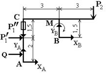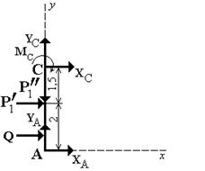 1) Определение реакции опоры А при шарнирном соединении в точке С.