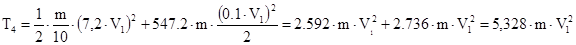 г) Работа силы тяжести G4 : AG 4 =-m4 ∙g∙OC=-0.1∙m∙980∙72=-7056∙m.