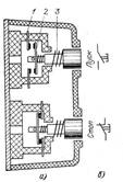 Перемикач ПКП (Рис. 3.2. а, б). Перемикач ПКП дозволяє одночасно перемикати два електричні кола. Механізм перемикача розташований у корпусі, утвореному з ізолюючих шайб, і принципово не відрізняється від пакетного вимикача.