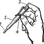 У електроустановках змінного струму напругою до 1000 В перевірку зручно виконувати однополюсним покажчиком напруги, який виготовляють у вигляді автоматичної ручки з ізолюючим корпусом 2 (рис. 6.1.).