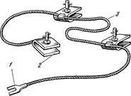 Рис. 6.2 Переносне заземлення – закоротка : 1 - накінечник для приєднання до заземлюючої шини, 2 - гвинтовий затиск, 3 - гнучкий дріт