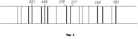 220В . Отождествите несколько линий спектра неона. Из спектра неона можно, например, выбрать линию 630 нм из тройки оранжевых линий и две - три другие линии – рис. 4.