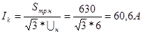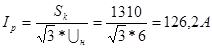 = 6300В – напряжение на высшей стороне понижающего тр-ра ГПП;