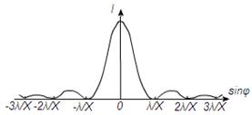 Рис.7. Распределение интенсивности при дифракции