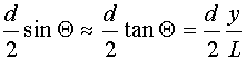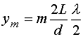 где y - координата точки наблюдения на экране. Интерференция двух волн будет деструктивной, если разность хода будет равна целому числу полуволн m(/2) . Отсюда находятся координаты тех точек на экране, где возникают темные полосы: