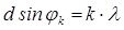 Более совершенным прибором, позволяющим проводить спектральный анализ света, является дифракционная решетка . Дифракционная решетка представляет собой систему большого числа одинаковых по ширине и параллельных друг другу щелей, лежащих в одной плоскости и разделенных непрозрачными промежутками, равными по ширине. Дифракционная решетка изготавливается путем нанесения параллельных штрихов на поверхность стекла с помощью делительных машин. Места, прочерченные делительной машиной, рассеивают свет во все стороны и являются, таким образом, практически непрозрачными промежутками между неповрежденными частями пластинки, которые играют роль щелей. Число штрихов на 1 мм определяется областью спектра исследуемого излучения - от 300 1/мм (в инфракрасной области) до 1200 1/мм (в ультрафиолетовой). Это устройство бывает двух типов: пропускающие (прозрачные щели, чередующиеся с непрозрачными промежутками) и отражательные (участки, отражающие свет, чередуются с участками, рассеивающими свет). И в том и в другом случае на поверхность наносится большое количество щелей или рассеивающих свет полос, причем число штрихов доходит до 103 на 1 мм, а общее число штрихов ~ 105 . Расстояние между двумя соседними щелями называется периодом решетки. Две волны, идущие от краев двух соседних щелей, интерферируют конструктивно, если: