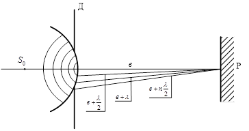 Вигляд дифракційної картини залежить від кількості зон Френеля, які вкладаються в отворі. Для отримання зон Френеля необхідно до найкоротшої відстані від екрана до хвильової поверхні добавити