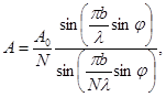 Дифракція світла на дифракційній решітці, яка має N щілин показана на рис.5.